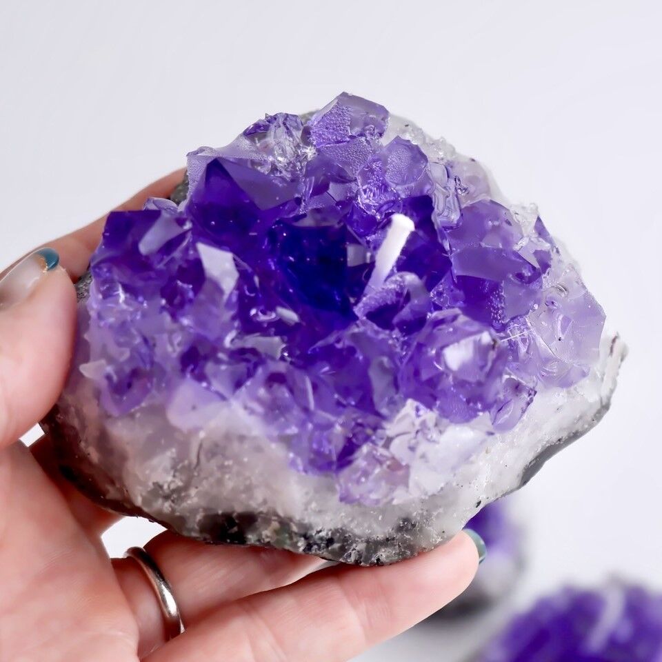 Immerse yourself in the elegance of Sacred Harmony Candles, crafted to resemble shimmering gemstones. Each piece is handmade, offering a soft musk scent and a radiant glow—perfect for gifting or creating a serene atmosphere.