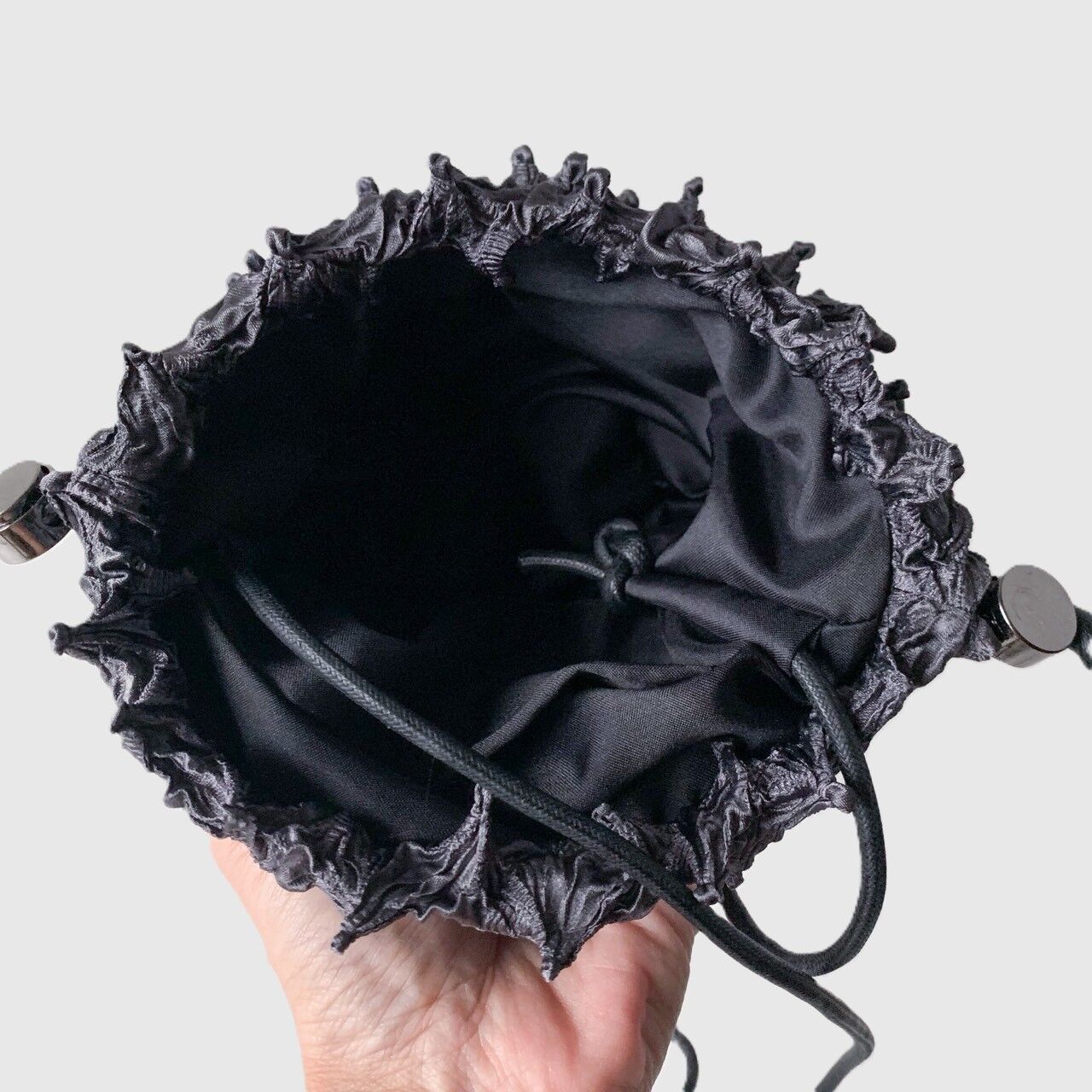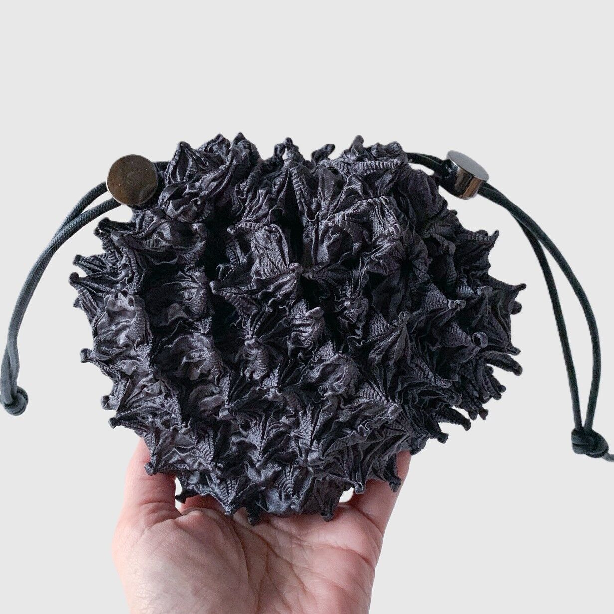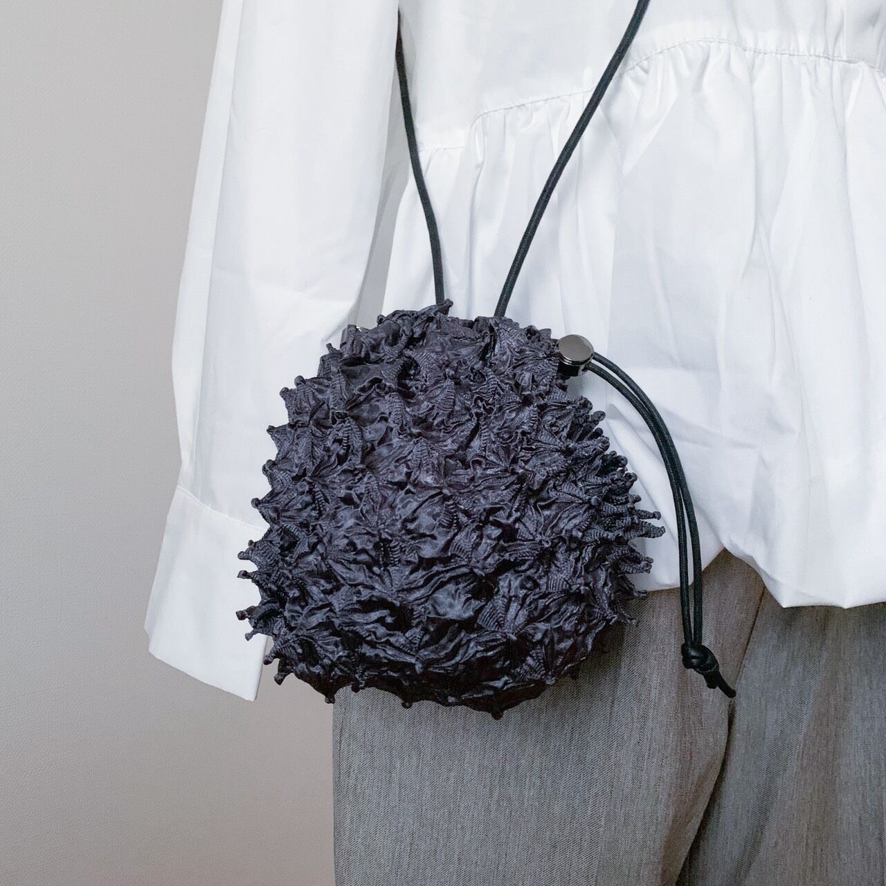 Crafted in collaboration with artisan Mayu, this Shibori bag preserves the fabric’s sculptural texture – an effect created through centuries‑old techniques of folding, stitching, and dyeing. Designed to protect the delicate patterns from stretching, it offers two versatile ways to wear: crossbody for ease or looped around the wrist for an elegant carry. A modern expression of Japanese artistry for everyday life.